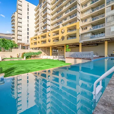Oxygen Apartments offers comfortable accommodations with city views and modern amenities suitable for extended stays. Each apartment is equipped with a kitchen, allowing for self-catering options. The spa and wellness centre provides opportunities for relaxation after exploring the city. This retreat balances convenience with comfort, ideal for families and those looking for longer stays near Brisbane.
